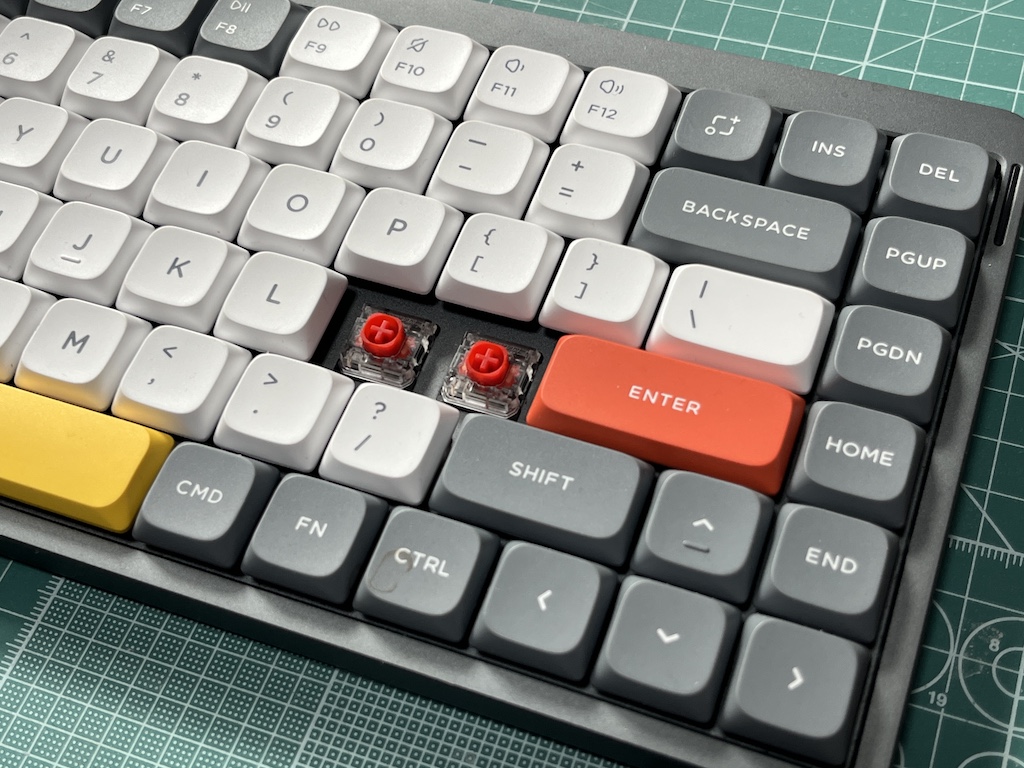 筐体は、NuPhy Air75(V2)と組み合わせています。携帯性は良いものの静音的な課題で、利用頻度が低かったキーボードでしたが、「Gateron Low Profile Red Silent 2.0 (KS-33)」に換装することで、実用的な静音キーボードとなりました。